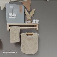 Babycadeaudoosje 23 x 23 x 5 cm zilverkleurig met daarin: