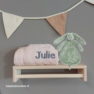 Dit betoverende kraamcadeau combineert zachtheid, comfort én een persoonlijk tintje – ideaal voor een uniek en hartverwarmend geschenk!