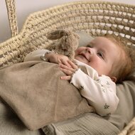 Wil je een écht bijzonder kraamcadeau geven? Laat de naam van de baby op het doekje borduren! Dankzij de hoogwaardige borduring (ca. 7 cm breed) wordt dit knuffeldoekje een uniek, blijvend aandenken. Persoonlijk, lief en met zorg gemaakt – een prachtig gebaar voor kersverse ouders.
