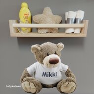 De babyknuffel met naam op shirt is een staande knuffel met naam van ca. 40 cm hoog. Dit maakt de knuffel met naam op shirtje geschikt om neer te zetten op de babykamer. Zo kleedt het de babykamer nog net wat meer aan.