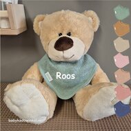 Maak kennis met Knuffel Beer Boris 45 cm met naam op bandana – de perfecte gepersonaliseerde knuffel voor jouw kleintje! Deze schattige knuffelbeer is ideaal als kraamcadeau, geboortecadeau of origineel babycadeau. Met een zachte, knuffelbare vacht en een stijlvol slabbetje waarop de naam van de baby geborduurd kan worden, biedt Boris een unieke en persoonlijke touch. Bestel deze hoogwaardige knuffelbeer bij Babykadowinkel.nl en geef een cadeau dat liefdevol en onvergetelijk is! Een knuffel als cadeau en natuurlijk altijd handig dit slabbetje voor de kleine.