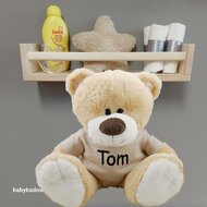 De knuffel Beer Boris heeft een lengte van 45 cm. Het shirtje kan worden geborduurd met een naam en het formaat van de borduring is ongeveer 2,5 cm hoog, afhankelijk van de lengte van de naam en het gekozen lettertype. Let op: het shirtje is geen speelgoed.