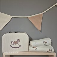 Van hydrofiele doeken kun je er geen genoeg hebben. Ze nemen enorm veel water op en drogen binnen no-time! Het thema Nostalgic Ride neemt ons mee terug in de tijd! Lieve hobbelpaardjes en beige tinten versieren deze fijne doeken, en jij hoeft nooit zonder te zitten doordat deze doeken per 3 komen! De Hydrofiele doeken hebben een formaat van 70×70 cm en dat maakt deze items super fijn in gebruik. Ben jij ook zo van van deze lieve print?