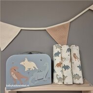 Ben je op zoek naar een uniek cadeau voor een pasgeborene? Dan hebben wij het perfecte item voor jou! Dit schattige koffertje, genaamd Roarsome Dino van Jollein, is werkelijk prachtig. Met zijn vrolijke thema en mooie Dino printje zal het zeker de aandacht trekken in de babykamer. Maar dat is nog niet alles! Je kunt namelijk ook de naam van de baby op de binnenkant van het koffertje schrijven. Op die manier wordt het echt een uniek en persoonlijk geschenk, vooral gecombineerd met de bijpassende hydrofiel doeken.
