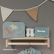 Ben je op zoek naar een uniek cadeau voor een pasgeborene? Dan hebben wij het perfecte item voor jou! Dit schattige koffertje, genaamd Roarsome Dino van Jollein, is werkelijk prachtig. Met zijn vrolijke thema en mooie Dino printje zal het zeker de aandacht trekken in de babykamer. Maar dat is nog niet alles! Je kunt namelijk ook de naam van de baby op de binnenkant van het koffertje schrijven. Op die manier wordt het echt een uniek en persoonlijk geschenk, vooral gecombineerd met het slabbetje met naam en de babysokjes.