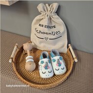 Met gratis linnen tasje met tekst: Mijn eerste schoentjes