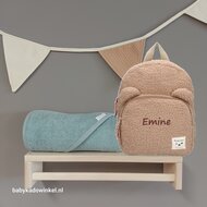 Mooie rugtas met naam geborduurd. Mooi klein formaat. Leuk als geboortecadeau met een mooie badcape of badjas in de tas. De ouders kunnen de rugtas met naam van de baby gebruiken voor het opbergen van klein speelgoed, als logeertas naar opa en oma, voor kinderdagverblijf, peuterspeelzaal enzovoort. Deze rugtas wordt geborduurd met naam van de baby op de voorkant. Kleur borduring naam rugtasje mogelijk in meerdere kleuren, maak uw keuze bij de opties. Deze leuke rugzak van Kidzroom uit de Beary Excited collectie is volledig van teddystof met 2 berenoortjes op het voorvak! De tas is beige van kleur en heeft een ruim hoofdvak die sluit met een rits. Verder heeft de tas nog een voorvak. Aan de bovenkant van de rugzak is een handige lus waardoor de tas gemakkelijk aan de hand te dragen is. Verder zijn de schouderbanden te verstellen en voor iedereen op maat te maken. LET OP: Grootte en positie van de oortjes kunnen verschillend zijn per rugtas.