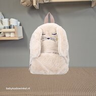 Mooie rugtas met mooi klein formaat. De ouders kunnen de rugtas van de baby gebruiken voor het opbergen van klein speelgoed, als logeertas naar opa en oma, voor kinderdagverblijf, peuterspeelzaal enzovoort. Deze leuke en speelse rugzak van Prêt uit The Adorables collectie is cream van kleur. De rugzak is super zacht en heeft een konijnengezichtje en twee zachte oren op de voorkant. De tas heeft een hoofd- en voorvak die beide sluiten met een goudkleurige rits. Verder is er een lus bovenaan de rugzak zodat de tas ook aan de hand te dragen is. De schouderbanden zijn gemakkelijk te vertellen en voor iedereen op maat te maken.