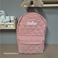 Mooie ruime rugtas met naam geborduurd. Leuk als geboortecadeau. De ouders kunnen de rugtas met naam van de baby gebruiken voor het opbergen van klein speelgoed, als logeertas naar opa en oma, voor kinderdagverblijf, peuterspeelzaal enzovoort. Deze rugtas wordt geborduurd met naam van de baby op de voorkant. Kleur borduring naam rugtasje mogelijk in meerdere kleuren, maak uw keuze bij de opties. De breedte van de naamborduring is ca 9 cm. Ontdek de magie van deze rugzak van Milky Kiss uit de Sweet Bliss collectie. De tas heeft een vintage roze kleur met fijne roze details. Hij heeft doorgestikt patroon wat zorgt voor een speels effect. Het hoofdvak van de rugzak is ruim en perfect voor het opbergen van alle benodigdheden, terwijl het voorvak extra gemak biedt voor kleinere items. De hoogwaardige ritssluitingen zorgen voor veilige opslag, terwijl de gewatteerde en verstelbare schouderbanden zorgen voor ultiem draagcomfort, zelfs tijdens lange dagen onderweg. Of het nu gaat om een dagje op school of een uitje met vrienden, Milky Kiss rugzak is de perfecte keuze voor jonge trendsetters die op zoek zijn naar stijl en functionaliteit in één.