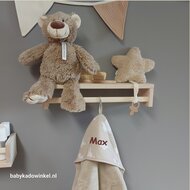 Indien naamborduring: ca 11 cm breed, afhankelijk van lengte naam en gekozen lettertype.